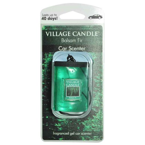 Village Candles New Balsam Fir Gel Air freshener simply hangs in your vehicle to gently fill your space with this best selling scent, Bergamot, evergreen leaves and fresh balsam with notes of oak moss let you have this scent of the great outdoors on tap, now you can have this scent on the go to satisfy your village candle craving.