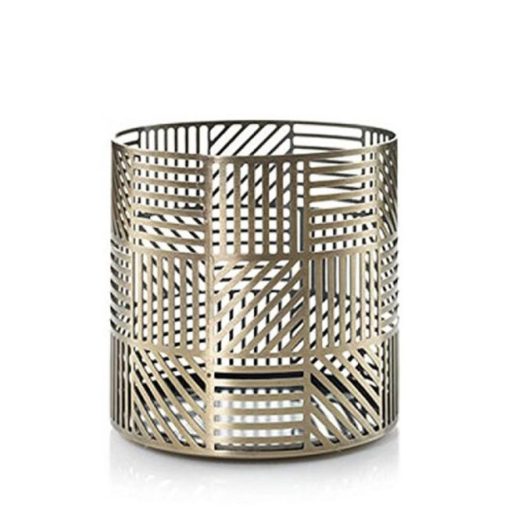 These metal candle accessories in warm brass provide beautifully modern decoration with the final crosshatch motive throughout.