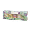 This giftset contains Red Raspberry, True Rose, Pink Grapefruit, Fresh Cut Roses and Pink Hibiscus Votives